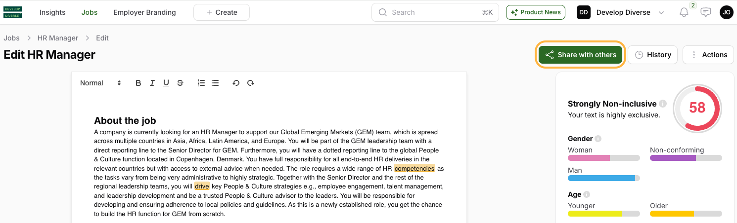 Invite your colleagues to Develop Diverse to work together on a text entry.