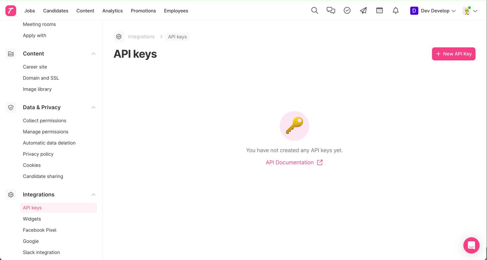 In Settings, under the Integrations section, select API Keys.