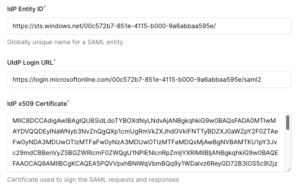 Once the information has been saved, Develop Diverse will generate unique SAML configurations that your Security & IT team should enter into the Identity Provider to finish the setup.