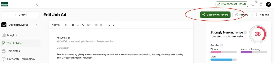 Once you’ve created a text entry, follow these simple steps to share it with others.