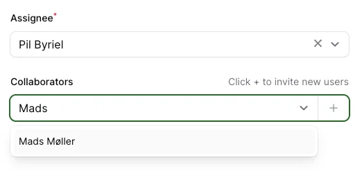 An assignee is the person responsible for a specific task. For example, a hiring manager may be assigned to review a job ad. To assign someone, click the field, search for users in the platform, or add a new colleague by entering their email address.